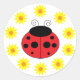 ¡Un lindo diseño de mariquita rodeado de margaritas amarillas en un pegatina redondo!