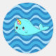 Redonda Pegatina de las olas azules de Kawaii Narwhal