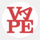 La palabra VAPE en letras rojas. Las letras VA están en la parte superior (la A está colocada de lado) y PE en la parte inferior. Un homenaje al arte pop, dedicado a todos los amantes.