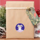 Llama espacial con cintas coloridas en un pegatina de fondo azul índigo.