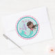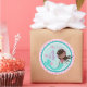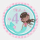 Sirena africana nadando con pegatina de cumpleaños de peces. Edad 4.