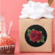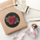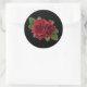 Pegatina redondo con una imagen de hermosos rosas de perlas negras profundas y verdes sobre negro. Vea confección, etiqueta de favor, caja de favores, bolsas de regalo, etiqueta y papel de envoltura. Ver toda la colección de Pegatinas del Día de la Madre en INVITES | Sección Pegatinas y etiquetas.