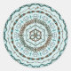 Esta mandala de círculo concéntrico presenta capas de motivos blancos, turquesa y marrones inspirados en las tejas celtas y la henna india, como las viñas, las cintas y las flores de loto.