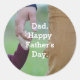 Dulce, foto de un niño tomándose de la mano con papá, aparece en este pegatina para el Día del Padre. Con el mensaje, "Papá, feliz día del padre", hace que este pegatina sea genial para usar en envíos especiales, regalos y más!
