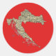 Un mapa de Croacia se centra sobre un fondo de color de la bandera en este pegatina. ¡Apúntate a los valores croatas!