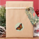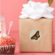 Naranja brillante y mariposa monarca negra en un pegatina de color pergamino.