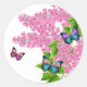 Diseño original de arte floral de mariposas en arbustos de lila por la diseñadora Carolyn McFann de Two Purring Cats Studio.