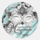 Pegatina de la fiesta de cumpleaños de Silver y Masquerade Verde azulado. Máscara de diamante negro y plata de bonito y joyas de plumas. Por favor, tenga en cuenta: ¡Todas las imágenes planas!