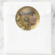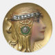 Pegatina redonda con la imagen de un medallón de oro de Art Nouveau de una joven mujer con un tocado de diamante. Vea el papel de ajuste correspondiente. Vea la colección completa de Pegatinas Gemstones & Medallions en la sección CARDS, POSTCARDS & PEGATINAS.