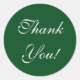 Redonda PEGATINA de moda: "¡Gracias!" BLANCO EN VERDE OSCU