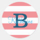 Redonda Pegatina de monograma azul y ondulado de bandas pr