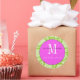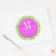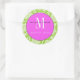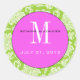 Redonda Pegatina de Monograma Rosa de Damasco Verde