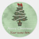 Un árbol de Navidad decorado con un fondo verde texturado, con un saludo personalizado. Cambia 'Feliz Navidad' a 'Felices Fiestas', 'Con Amor', 'Para:' o cualquier texto que prefieras y agrega tu nombre (familiar). Excelente manera de asegurar los sobres de tus tarjetas de vacaciones o usarlos como etiquetas para tus regalos de Navidades.