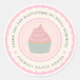 Pegatina de negocios de pastelería. Escarcha rosa con rociadas de estrellas y puntos en la parte superior.