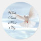 Pegatina redondo para hacer coincidir nuestra invitación "Pájaro Blanco" con una imagen de una paloma blanca en un cielo azul turbio y las palabras "Pájaro blanco debe volar" en escritura negra. Las palomas, por lo general de color blanco, son símbolos de amor, paz o como mensajeros. La canción "White Bird" fue escrita y interpretada en 1969 por el grupo de rock It's a Beautiful Day de San Francisco. Vea el pegatina vinílico cortado por personalizado, vea la invitación, el confetti, la bolsa de favores, la caja de favores, las bolsas de regalo, la etiqueta de regalo y el papel de envoltura. Ver toda la colección de Pegatinas Psicodélicos de los años 60 en INVITES | Sección Pegatinas y etiquetas.