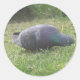 Esta hoja de pegatinas redondos muestra una fotografía de una pichón salvaje tomada en mi jardín trasero. El pájaro estaba picando en el pasto buscando semillas que habían sido derribadas de un alimentador de aves. Al bajar la cabeza a picotear, cerró los ojos y, como resultado, parece que está durmiendo.