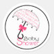 Redonda Pegatina de paraguas Baby Shower en blanco y rosa