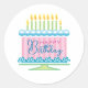 Redonda Pegatina De Pastel De Cumpleaños Rosa Y Azul