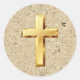 Este elegante Pegatina cristiano de la Santa Fe Clásica presenta un diseño de la Cruz de Oro sobre un fondo de color crema de textura.