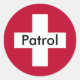 Pegatina rojo con cruz blanca. "Patrulla" está en cruz blanca.