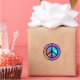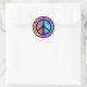 Este pegatina colorido y divertido presenta una señal de paz negra distorsionada en un fondo multicolor que te recordará tu tintes de corbata favorito.