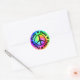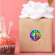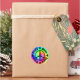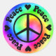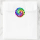 Pegatina de Paz y Amor - signo de paz y corazones en un fondo espiral de arco iris.