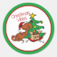 Redonda Pegatina de perro dachshund con ambiente navideño