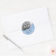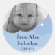 Personalizable pegatina azul con foto, nombre y fecha de nacimiento del bebé.
