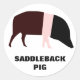 Este pegatina cuenta con una representación de tipo personalizado del cerdo de Saddleback, mi rara raza favorita de cerdo británico. Se reconoce fácilmente por el patrón de albarda rosa que le da nombre a la raza. El resto del cerdo es negro. La raza está escrita debajo del cerdo y este texto es personalizable para permitirte introducir tu propio texto.