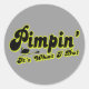 Pegatina de Pimpin' con escritura oscura y resplandor de oro de proxeneta.