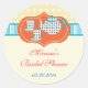 Moderno y moda personalizado pegatina de ducha de novia. Cuenta con un menaje para preparar té y tazas de té con puntos de polka de diferentes colores. Diseño de moda en colores vivos. Utilícelo para favores partidarios o para sellar sobres.