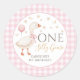 Redonda Pegatina de primer cumpleaños de Pink One Silly Go