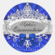 Redonda Pegatina de Quinceanera de Tiara Azul y Damask