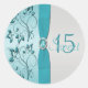 Redonda Pegatina de Quinceanera floral Aqua y Silver