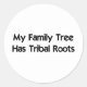 Muestra tu orgullo indígena con este pegatina redondo "Mi árbol familiar tiene raíces tribales" de muñecas encadenadas.