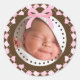 Adorables pegatinas de estilo rosa y marrón. Excelente manera de anunciar su recién nacido o como agradecimiento por los regalos de la ducha de bebé. Personalizar con tu foto.