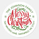 Feliz Regreso de Navidad Dirección Ronda Pegatina Etiqueta Navidades de vacaciones Tipografía Clásica Texto Rojo Blanco y Verde Festividad Navidad Caligrafía Script Nombre de familia Navidades Sello para sobres de saludo de vacaciones