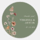 Sage Green Floral Classic Round Pegatina. Este elegante y elegante pegatina redondeado de sellos cuenta con hermosas flores de acuarela pintadas a mano dispuestas como un encantador ramo perfecto para bodas de primavera, verano o otoño. Encontrar elementos coincidentes en la colección de Bodas Sage Green Boho Wildflower.