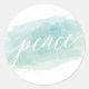 Este pequeño pegatina redondo presenta un tratamiento personalizado de acuarela en tonos acuáticos y menta y un mensaje de paz en un guión elegante. Hace un gran pegatina de cierre o sello para vestir sus sobres esta temporada de vacaciones.