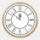 Este pegatina redondo presenta un reloj negro con números romanos sobre un fondo blanco. Alrededor del borde del pegatina hay un falso borde dorado. Perfecto para Nochevieja o cualquier otra reunión formal.