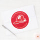 Este pegatina redondo personalizado está decorado con el Helmut del Departamento de Bomberos y puede ser personalizado arriba con el nombre de una ciudad o ciudad y abajo con el motor o número de estación, o cualquier otra información que quiera sustituir.