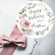 Redonda Pegatina de Rosas de cumpleaños feliz