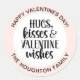 Un Pegatina Día de San Valentín color rosa con las palabras, abraza besos y deseos de San Valentín. Personalizado con su nombre para sus regalos y tratamientos El día de San Valentín. Diseñado para ti por Blackberry Boulevard.