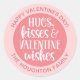 Un lindo Día de San Valentín Pegatina rosa con las palabras, abraza besos y deseos de San Valentín. Personalizado con su nombre para sus regalos y tratamientos El día de San Valentín. Diseñado para ti por Blackberry Boulevard.