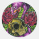 Una fresca cobra magenta entrelazada con el cráneo y algunos rosas