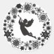 Difunde alegría navideña y celebra la temporada festiva con esta bonita pegatina redonda clásica, adornada con la silueta negra de un ángel volando con trompeta y corona de copos de nieve negros sobre fondo blanco. Es una forma fácil de alegrar los sobres de tus tarjetas de Navidad, pero también un hermoso toque final para tus regalos de Navidad.