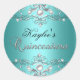 Pegatina de Quinceanera plateado y Verde azulado. Elegante diseño de perlas damasquinadas y arcos de diamante. Por favor, tenga en cuenta: ¡Todas las imágenes planas!