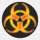 pegatina negro con un diseño estilizado de símbolo de riesgo biológico naranja amarillo-amarillo.