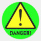Este diseño, de color amarillo, negro y verde neón, presenta un punto de exclamación dentro de un triángulo, un símbolo internacional para advertencias y peligros. El texto es personalizable y se puede cambiar de "Peligro" a su propio mensaje de advertencia personal.