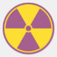 Pegatina con el símbolo de radiación morado y amarillo.